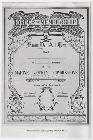 In a nod to their naval origins and equine interests the P.O.W.s had wanted to call themselves the "Marine Jockey Club" but self-organised "Clubs" were forbidden under Nazi rule so the grander word "Commission" was substituted.