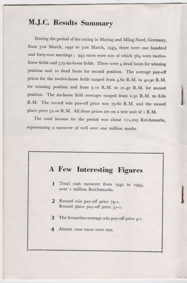 The Marine Jockey Commission was formed by Merchant Seamen held as Prisoners of War in Germany during World War II. They provided sporting entertainment for their fellow prisoners and raised over £3,000 for the British Red Cross whilst still in captivity.